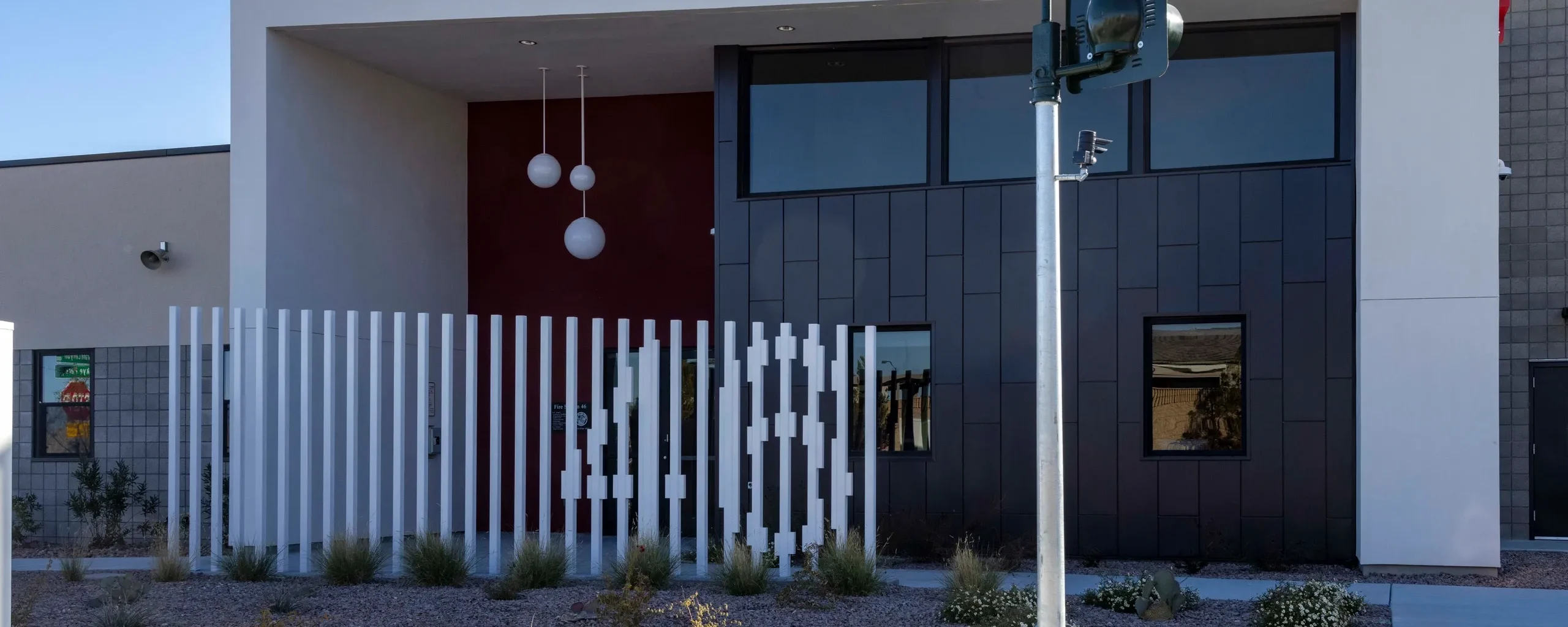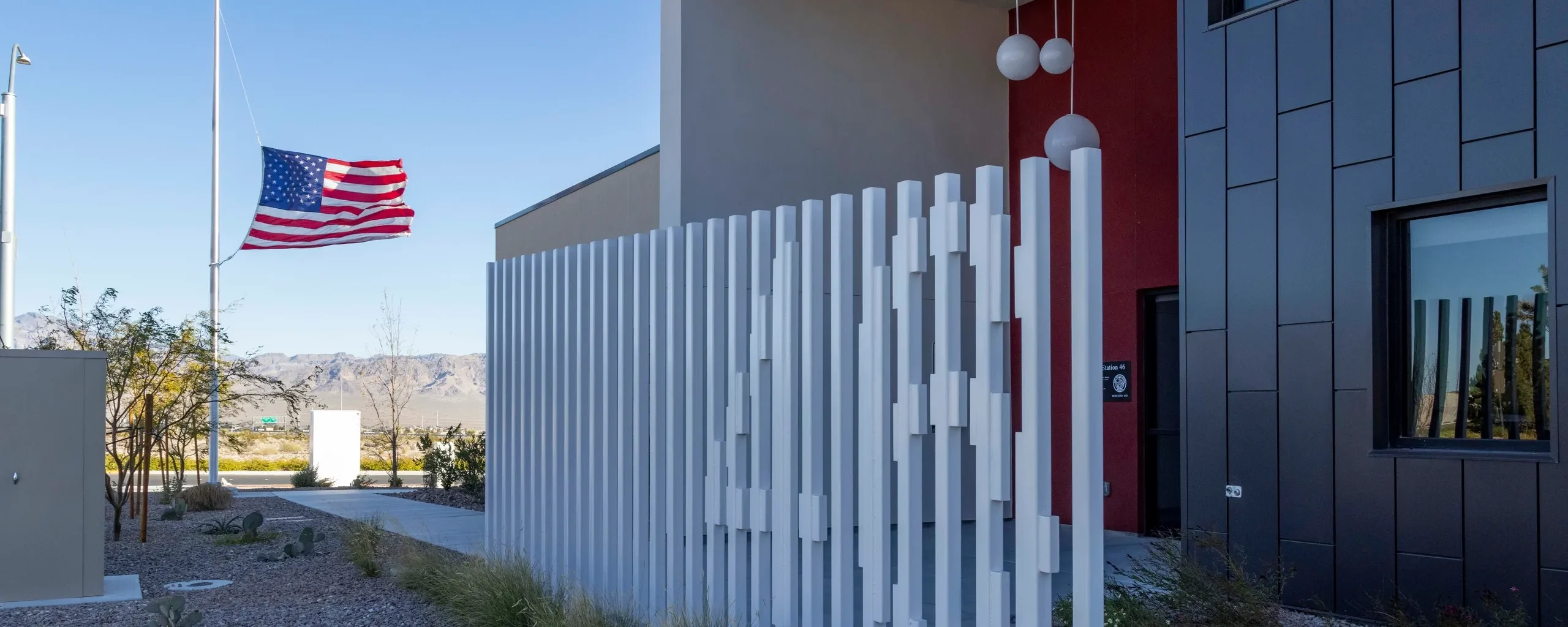Fire Station 46 is public/private partnership between the Century Communities and the City of Las Vegas. Hosting 3 bays and a medic unit, this station services the Skye Canyon neighborhood.
