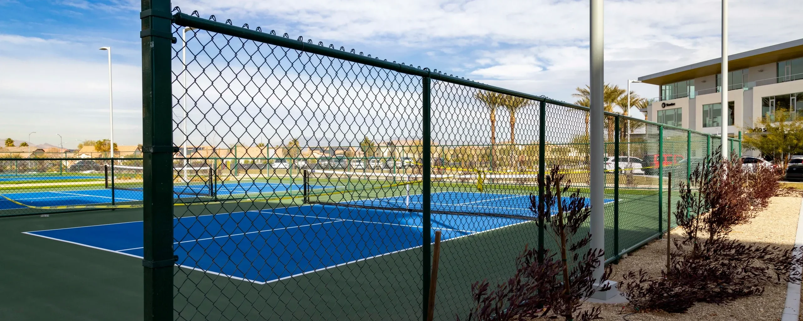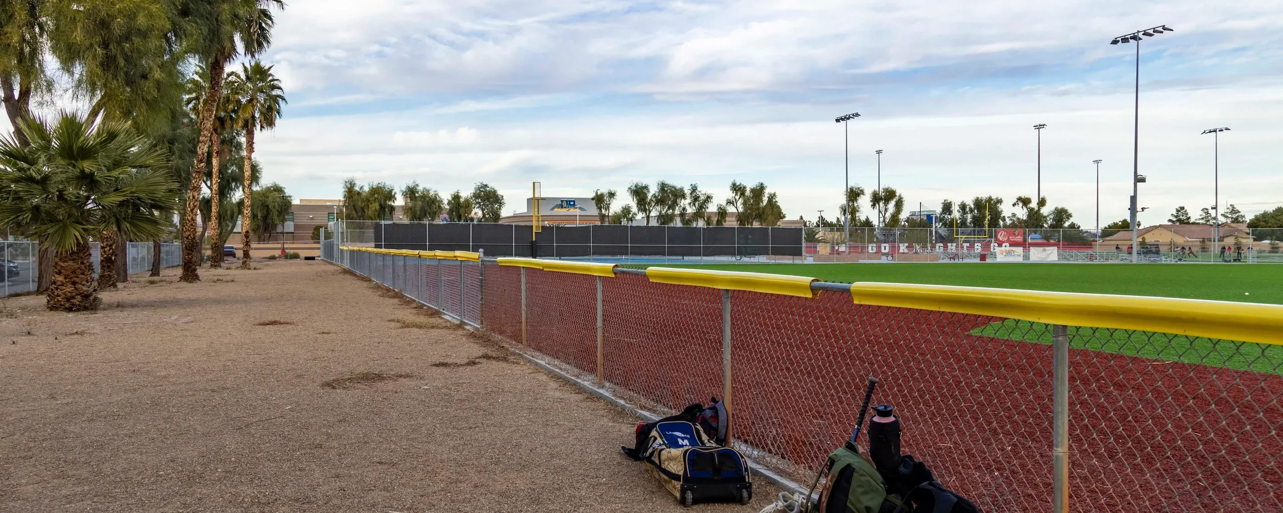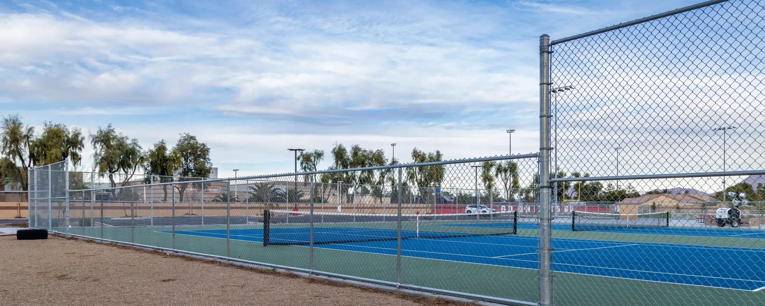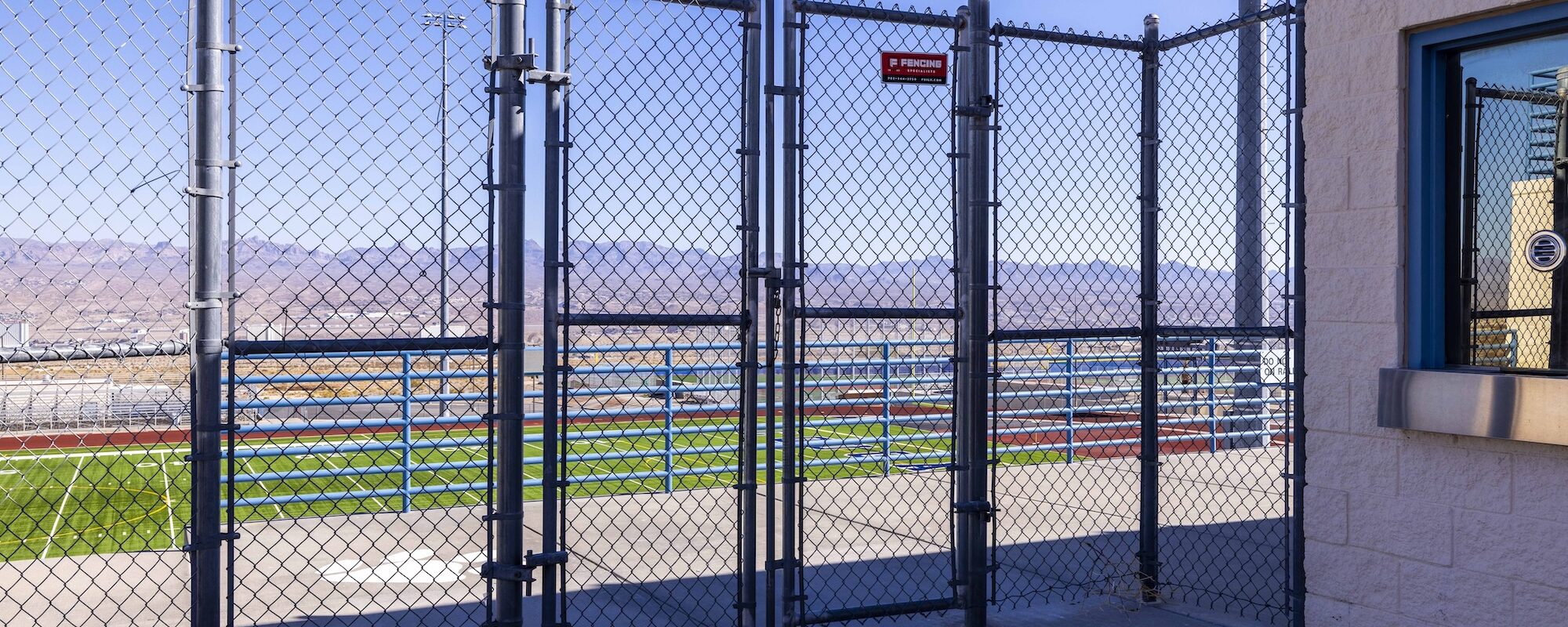 - Chain Link fencing surrounding sports fields with slats