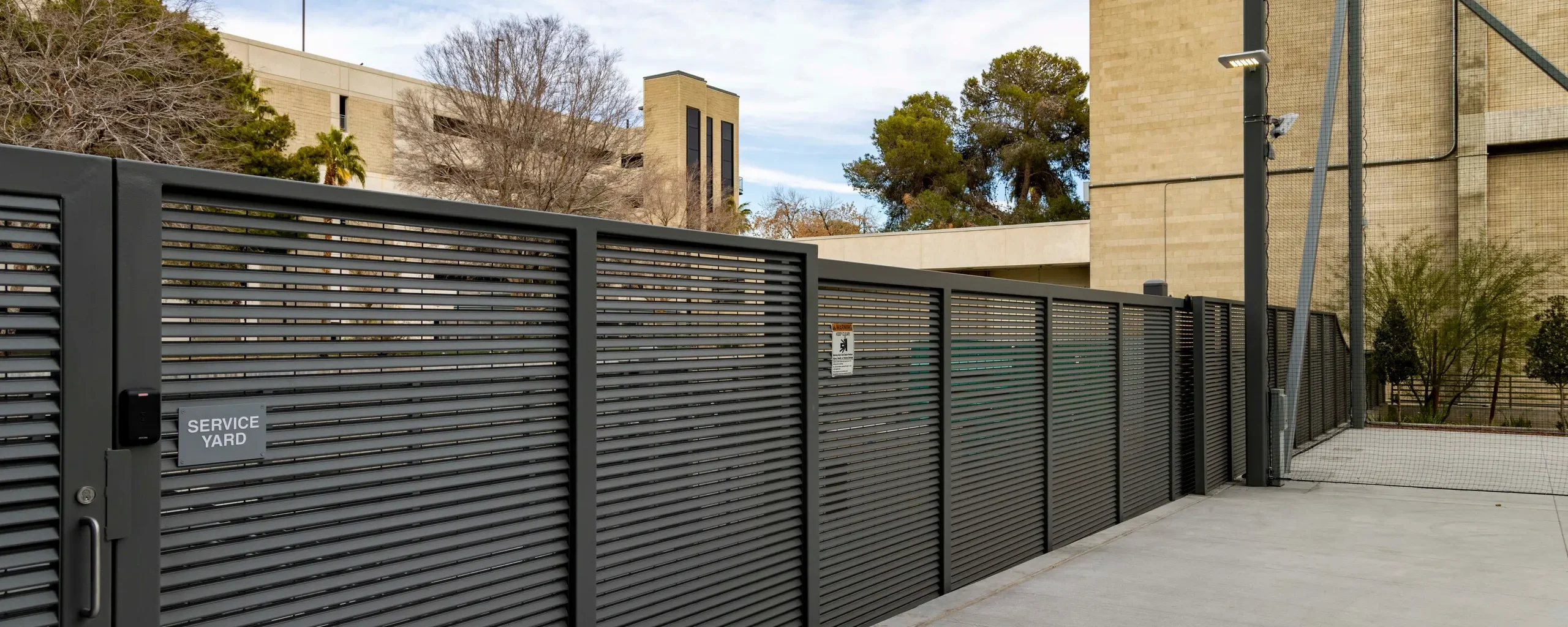 The newly renovated UNLV Howard R. Hughes College of Engineering hosts our custom-designed louvered fence application.